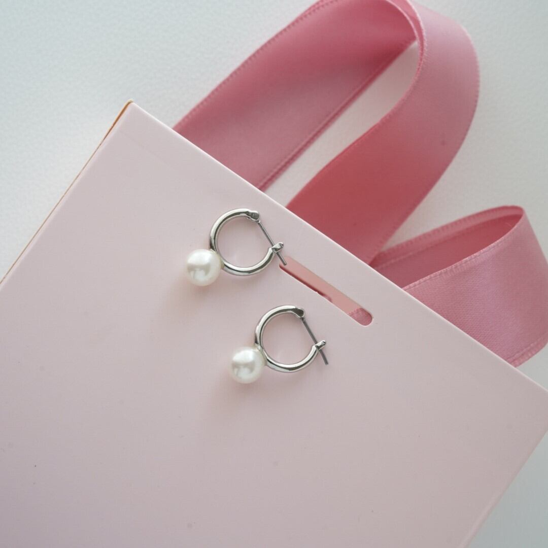 シンプルなフープピアス。