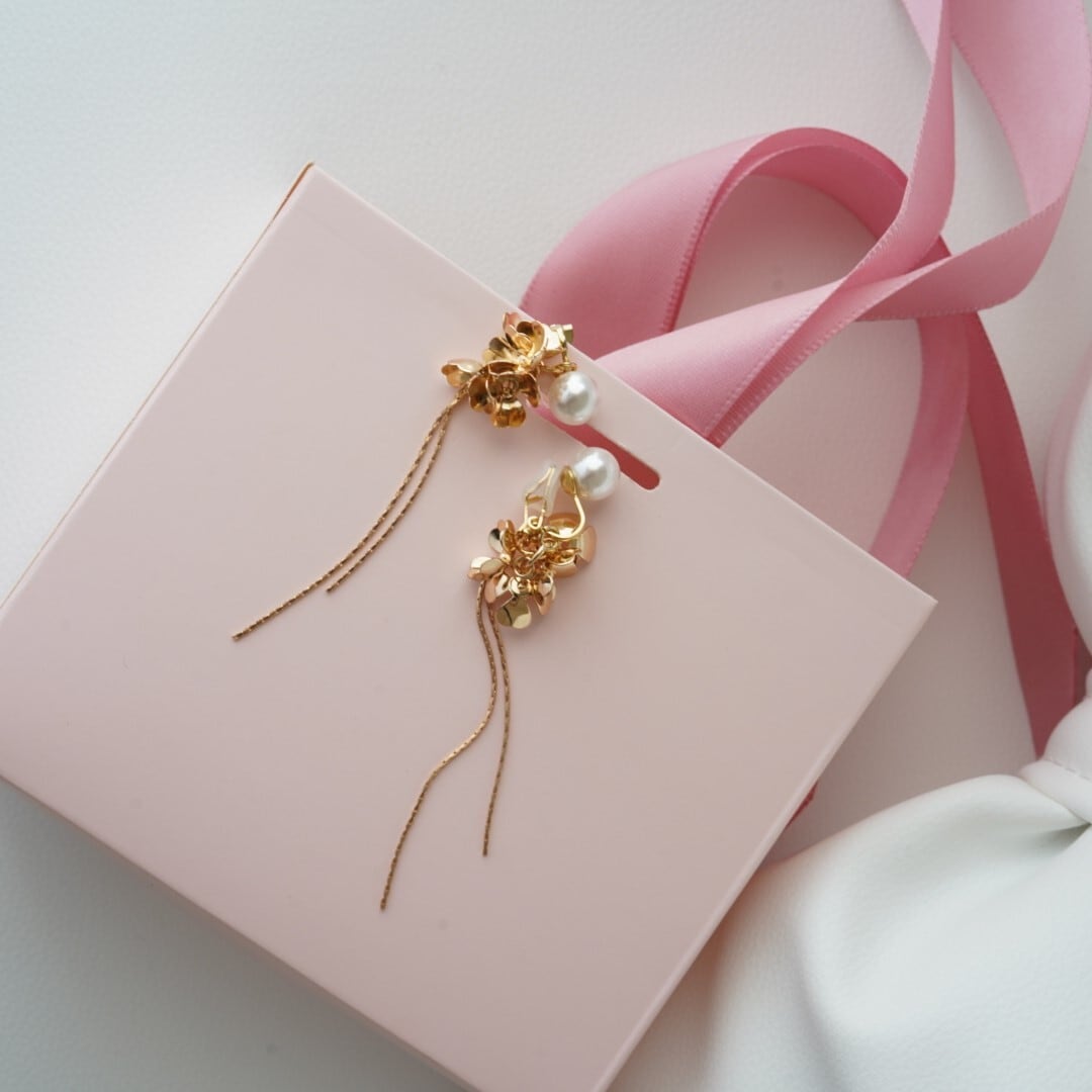 pearlタッセルフラワーイヤリング